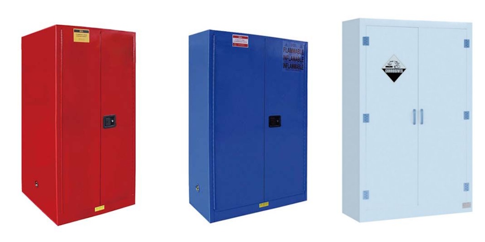 - ארון בטיחות כללי לכימיקלים – התשתית של כלל הארונות המוצעים כוללת מדפים הניתנים לכוונון שיש להם מגרעת ללכידת טפטופים, מנגנון נעילה כפולה להגברת הבטיחות, הגבהה נגד נזילות, אוורור משני צידי הארון, מדבקות אזהרה ומאווררים שמצוידים ברכיבים נגד אש.