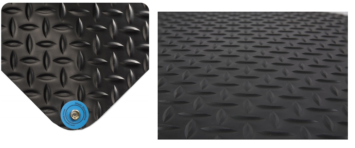 חלק מהמשטחים מיוצרים מתרכובות גומי או ויניל ייעודיות, המשלבות תוספים שמאפשרים שליטה ברמת ההתנגדות החשמלית. מבחינת הטקסטורה, ניתן למצוא משטחים עם דוגמת יהלום שמטרתה לשפר אחיזה ולהפחית סכנת החלקה, לצד דוגמה חלקה שעשויה להתאים יותר לסביבות שבהן חשוב ניקוי קל ומהיר. ייתכן כי בחדרי מעבדה או אזורי בדיקות עדינים יעדיפו גימור חלק, בעוד שבקווי ייצור פעילים יותר תיבחר טקסטורה שמעניקה יציבות נוספת.