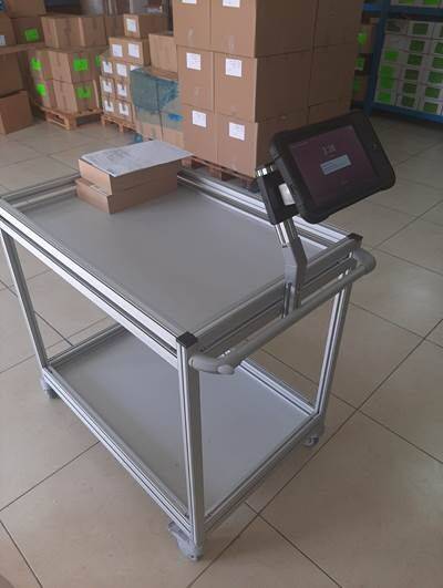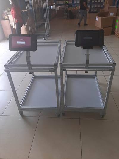 - עגלה עשויה פרופיל אלומיניום אנודייז עם מדפי HPL.