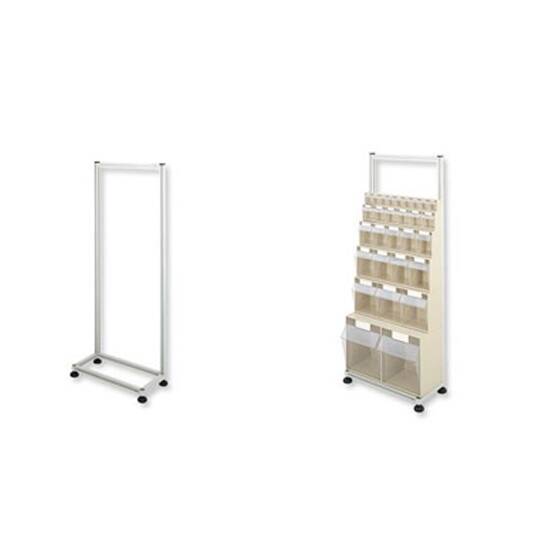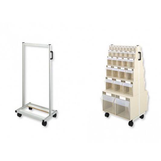 | עגלת\ מעמד לרב תא דו צדדי | מעמד דו צדדי מפרופיל אלומיניום להרכבת מערכת של תאי רב-תא עם גלגלים לניידות נוחה. מאפשר גישה נוחה ומהירה לפריטים תוך חסכון בשטח אחסון וקומפקטיות. כולל ידית נוחה לניוד המערכת. * לא כולל תאי אחסון | גובה מסגרת: 128.0 ס"מ רוחב מסגרת: 60.0 ס"מ גובה סט רב תא מלא בתוך המסגרת: 116.0 ס"מ |