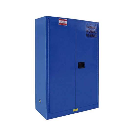 ארון בטיחות לאחסון חומרים מסוכנים. הארונות עשויים מתכת מצופה בשכבת הגנה נטולת עופרת העמידה בפני כימיקלים ושריפה, לצמצום השפעות קורוזיה ולחות.