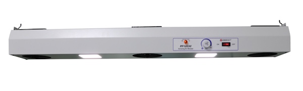 יוניזטור עילי עם שלושה מאווררים מיועד לנטרול יעיל של מטענים אלקטרוסטטיים בסביבות ייצור ותהליכי עבודה תעשייתיים. המערכת מייצרת זרימת אוויר רחבת היקף העשירה ביונים חיוביים ושליליים, המאפשרים נטרול מהיר ואחיד של חשמל סטטי על פני משטחים ואובייקטים.
