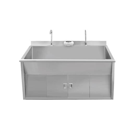 כיור רחצה מקצועי מנירוסטה, מיועד לסביבות רפואיות, מעבדות וחדרים סטריליים. הכיור מצויד בברזים עם חיישן להפעלה ללא מגע, לחימום מים מובנה ומתקן לסבון, המאפשרים שמירה על היגיינה גבוהה ונוחות שימוש מרבית. המבנה העמיד והאיכותי מבטיח שימוש לאורך זמן תוך עמידה בתקנים מחמירים.