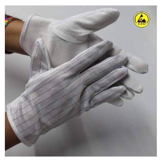 כפפה בד אנטי סטטית מפוליאסטר, מחוספסת (נקודות). דגם GL-3003 בנויה בצורת רשת ESD מיוחדת העשויה סיבים מוליכים.