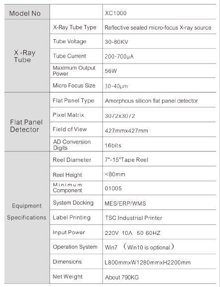 XC1100 – מכונת אוטומטית מלאה של קרני רנטגן עם מיקרו פוקוס המשתמשת בעקרון פרספקטיבה של רנטגן ובתוכנת אלגוריתמים שפותחה באופן עצמאי עם פונקציית AI, שיכולה לחשב במהירות ובדייקנות את מספר החומרים בסליל החומר.
