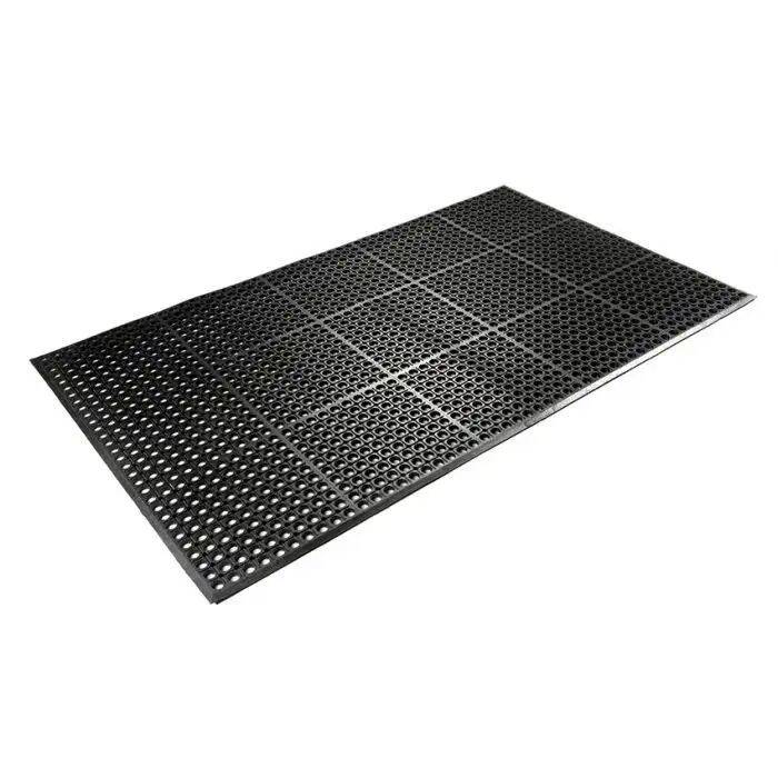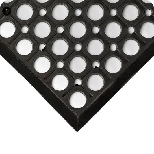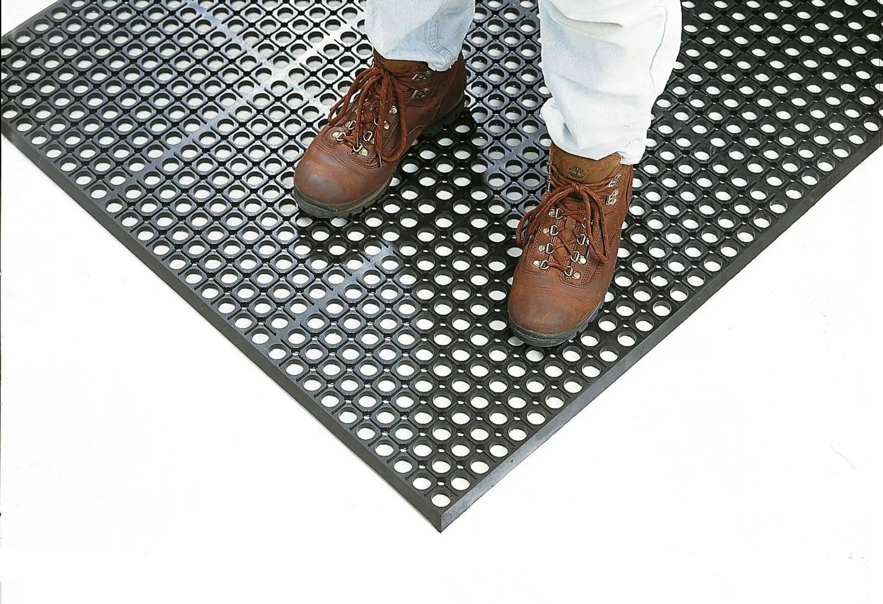 משטח דריכה לאזורים רטובים נגד החלקה, שנועד במיוחד לשימוש תעשייתי או מסחרי באזורים בהם רצפה עשויה להיות רטובה או חלקה. המשטח מיוצר מגומי טבעי, כולל ניקוז (Drainage) ומעוצב כך שיאפשר ניקוי תדיר, זרימת נוזלים והפחתת סכנת החלקה. הוא מתאים לסביבות עבודה עם מים או נוזלים שאינם אגרסיביים במיוחד, ומוצע במידות סטנדרטיות.