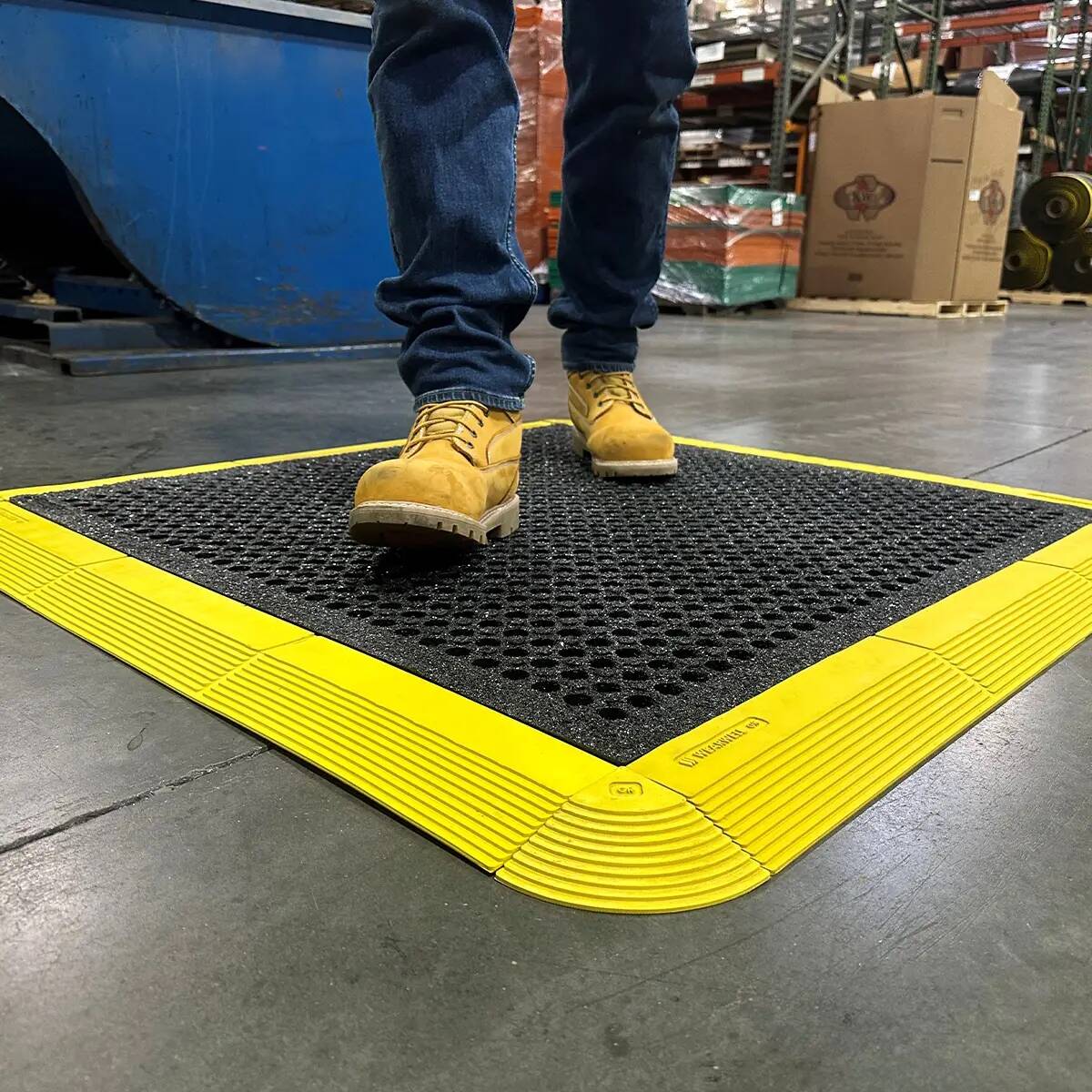 העיצוב המנוקב מאפשר ניקוז יעיל של נוזלים ומונע הצטברות מים, בעוד מערכת הנעילה המודולרית מאפשרת חיבור מהיר בין משטחים ליצירת אזור עבודה רציף ובטוח.