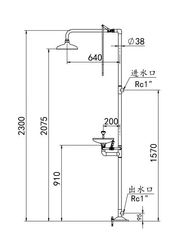 - שילוב מלא של מקלחת חירום ומשטפת עיניים בעמדה אחת