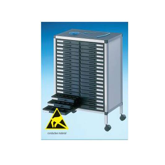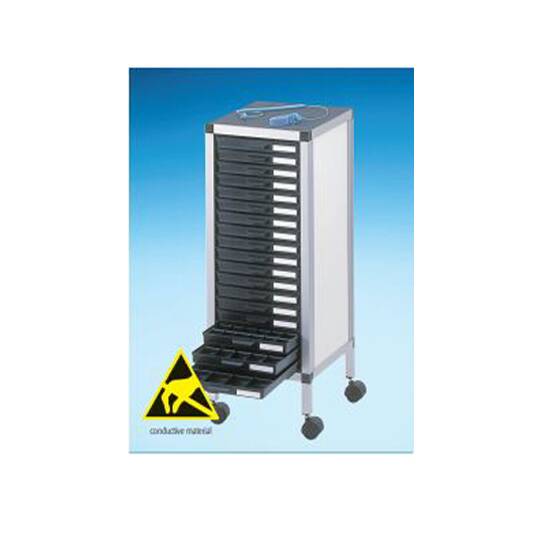 עגלות עם גלגלים לאחסון רכיבים, העגלות מתאימות לשימוש בחדרים נקיים לאחסון רכיבי אלקטרוניקה ושינוע חלקים בצורה נוחה וקלה בסביבה נקייה. העגלה קיימת בכמה צורות וגדלים בהתאם לצרכי הלקוח.