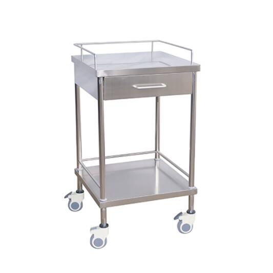 עגלת טיפולים מקצועית עשויה נירוסטה מלאה, המיועדת לשימוש יומיומי במרפאות, בתי חולים וחדרי טיפול. העגלה כוללת שני מדפים מרווחים ומגירה נוחה לאחסון ציוד רפואי חיוני, עם מעקות בטיחות לשמירה על הציוד בזמן עבודה. בזכות מבנה קומפקטי וגלגלים איכותיים עם בלמים, העגלה מאפשרת ניידות קלה וגישה מהירה לכלים ולציוד.