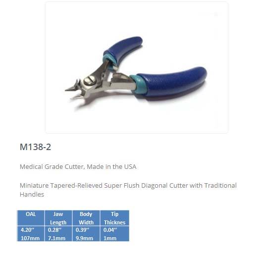 | M138-2 | Medical grade cutter. Miniature Tapered-Relieved Super flush Diagonal Cutter with Traditional Handles |