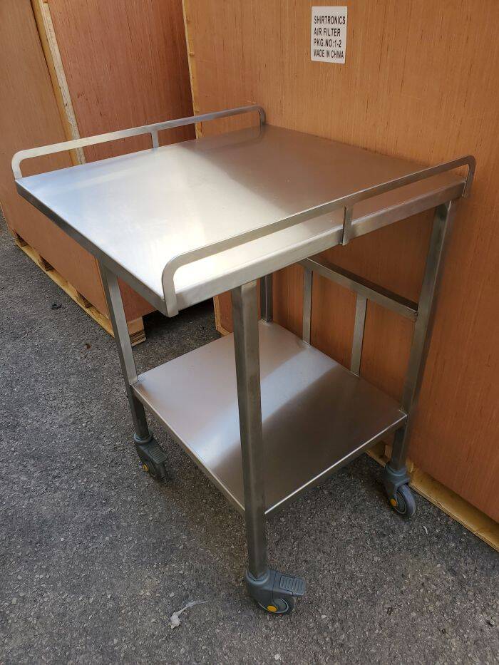 שולחן נירוסטה 316 בייצור מיוחד עם גלגלים אנטי סטטיים.